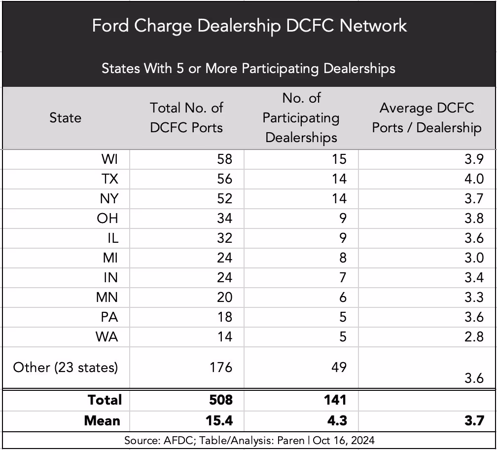 On October 15, we were looking at data from the AFDC charging database and discovered that sometime that day, Ford added to the database 141 DCFC stations as part of its Ford Charge network. Since tracking and analyzing public charging data and trends is one of the many things we do at Paren, we dove into the data to better understand the composition of this new Ford Charge network.