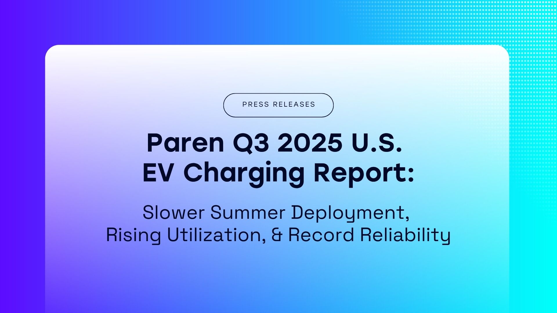 Paren Q3 2025 U.S. EV Charging Report: Slower Summer Deployment, Rising Utilization, and Record Reliability